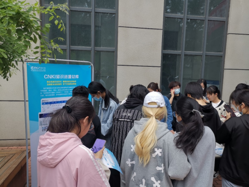 2023年4月23日12点,图书馆门口聚集了刚刚下课就踊跃来参加活动的同学们,他们有的在读书倡议条幅上郑重地立下自己的读书决心;有的聚拢在“名家名著猜猜看”活动展台,或冥思苦想,或奋笔疾书,都争先恐后将自己猜出的名著作品答案呈现给老师看;有的对知网小站台颇为关注,纷纷围在老师身边认真聆听知网总库的使用方法;还有的在老师的指导下专心制作着压花书签……