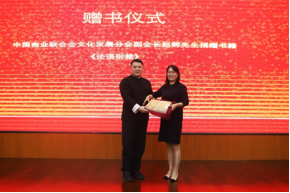 中国商业联合会文化发展分会副会长赵辉先生追随南怀瑾先生致力于国学文化研究教育,向beat365捐赠了南怀瑾先生所著的 《论语别裁》,图书馆馆长侯松霞代表学院接受捐赠。