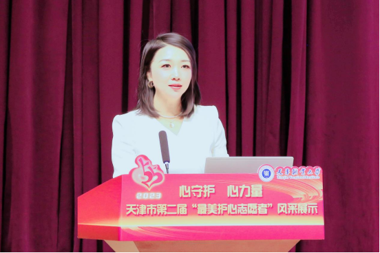 5月25日是全国大学生心理健康日。5月24日下午,“心守护·心力量”天津市第二届“最美护心志愿者”评选活动风采展示在天津职业大学举行。学院荣获2023年天津市“心守护.心力量”最美护心志愿者荣誉奖项的周爱静老师,以演讲的形式在现场进行风采展示。