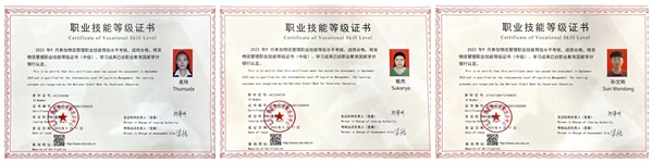 学院孙文栋、美玲(泰国)、敏杰(泰国)参加比赛,经过激烈角逐获得一等奖优异成绩,并取得由北京中物联物流采购培训中心颁发的物流管理职业技能等级证书(中级),芦春荣、孙季震获得优秀指导教师奖。