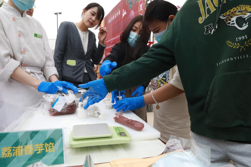 学生们品尝传统月饼