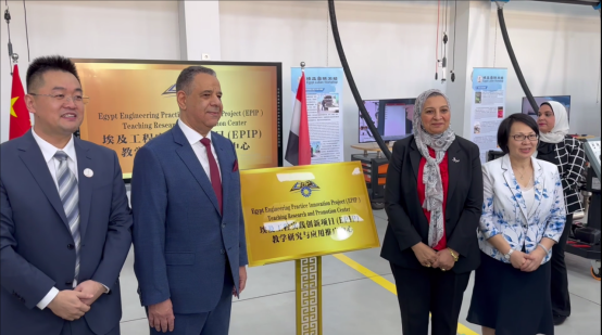 陈杰副部长听取了鲁班工坊品牌核心要义、工程实践创新项目(EPIP)教学模式推广应用、埃及鲁班工坊建设成效等方面介绍,并考察了工坊数控设备应用与维修、新能源应用技术和汽车运用与维修技术等专业实训室。