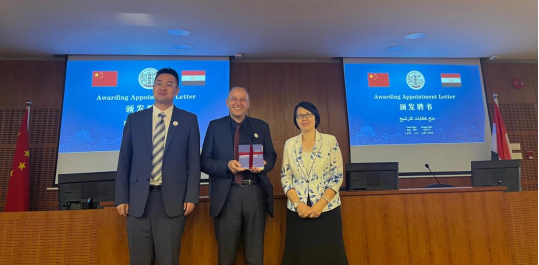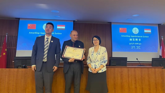 于海祥院长和李云梅院长向艾因夏姆斯大学艾哈迈德·厄尔社伯格教授授予EPIP应用专家聘书及书籍