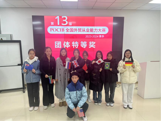 由中国国际贸易学会主办、全国外经贸职业教育教学指导委员会指导的“第十三届POCIB全国外贸从业能力大赛”于2023年11月2日-11月14日举行,经济管理学院2022级跨境电子商务专业20名学生组成两支队伍参与角逐。经过13天的奋力拼搏,两支队伍分别斩获团体特等奖和团体一等奖,同时20名选手全部获得个人奖项;其中3名同学获得个人一等奖;9名同学获得个人二等奖;8名同学获得个人三等奖,两支队伍的指导教师刘莎、秦莹、林阳、周杉分获相应奖项,与去年同期相比在获奖等级、个人奖项数量、比赛总得分等方面均有较大提升!