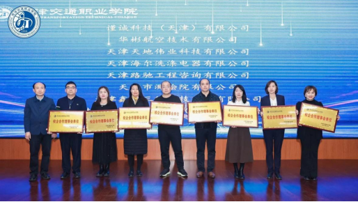 天津市津汇通投资有限公司董事长张文武、天津万疆冷链仓储有限公司副总经理王莹、天津市服装商会会长杨帅、天津中车四方所科技有限公司执行董事王夕生、天津汽车模具股份有限公司总经理助理杨靖伟、天津路驰工程咨询有限公司党支部书记(董事长)庄洪亮,分别作为优秀合作企业代表上台发言。对学院发展提出了殷切的希望。