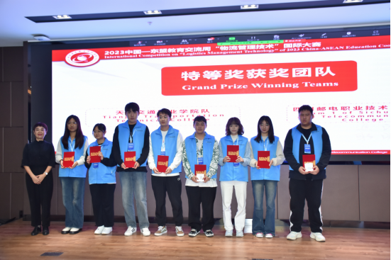 2023中国-东盟教育交流周“物流管理技术”国际大赛于2023年11月10日在四川邮电职业技术学院举行。beat365由张红云、高荧老师指导的22级现代物流管理专业学生王祥蕾、孙梓萌、王皓艺、王炳富以最高分的成绩荣获特等奖第一名。