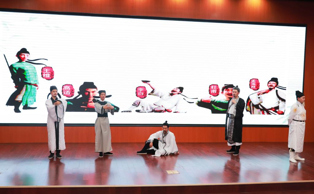 中华优秀传统文化是是中华文明的智慧结晶和精华所在,深深植根于青年学子内心之中,潜移默化影响着他们的思想方式和行为方式。学生们通过“唐诗书韵”的情景剧和“融在中华儿女血脉里的盛唐佳作”的配乐诗朗诵两个精彩的演出,充分展现了学院学生用中国话语和中国叙事表达对时代的热爱,对传统文化的理解。