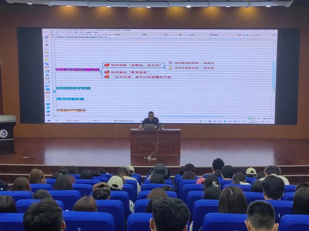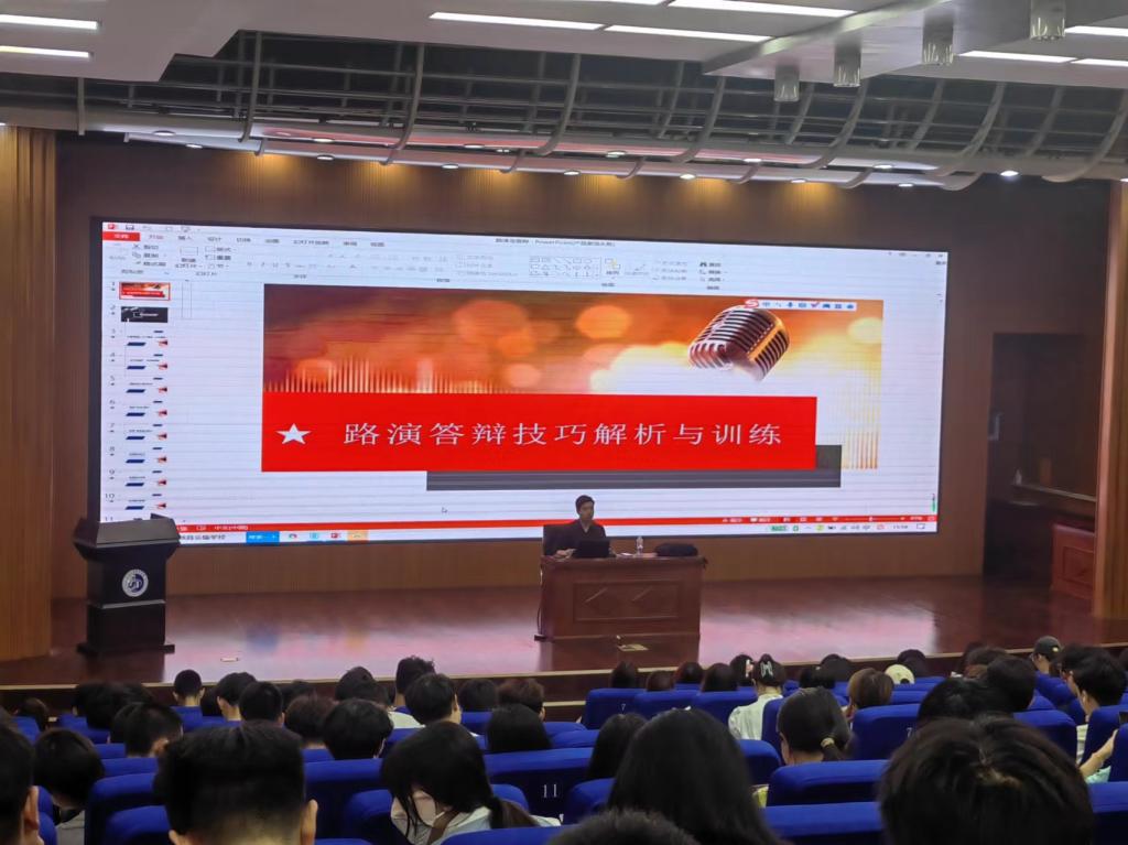 杨洪波、李鑫老师分别就“中国国际大学生创新大赛路演与答辩、筹备关键环节”等进行了详细的解析和介绍。两位老师通过案例详细讲解了一个项目如何界定自己的客户、制定出色的营销策略,怎样展示项目的产品核心优势、盈利模式、未来规划等。