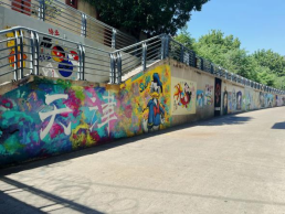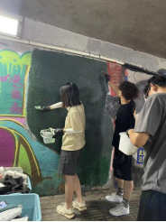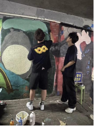 夏日炎炎,同学们热情似火。从选址、设计到调色、填充,大家分工明确、齐心协力,历经无数次修改打磨,终将创意跃然于墙面,实现了从白墙到艺术的蜕变,也在绘画创作中完成了对自己内心世界的探究,展示了大学生积极向上、乐观健康的心态。不仅在创作中找到了乐趣,学会了沟通表达和团队合作,还美化了城市形象,提升了城市的文化氛围。