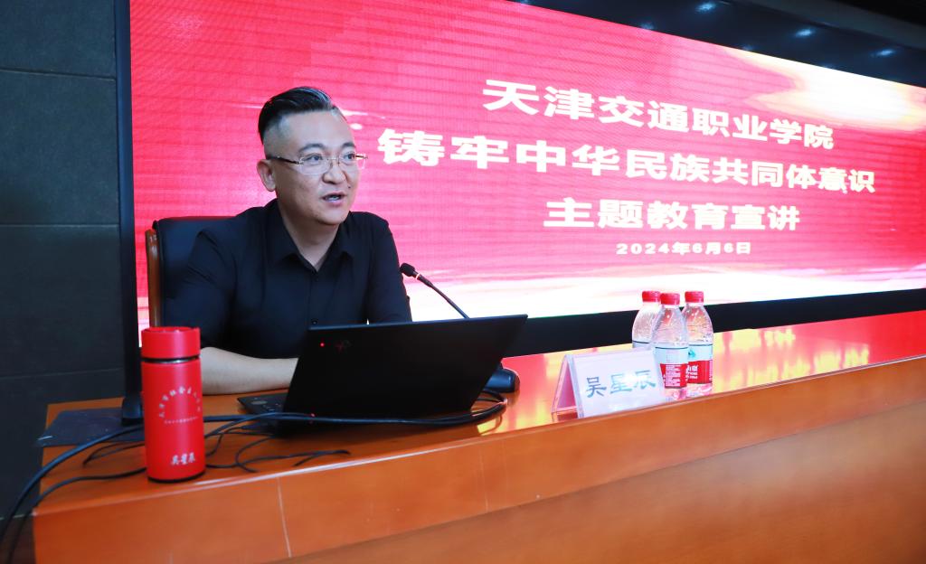 为深入贯彻习近平总书记在2023年中央政治局第九次集体学习时的重要讲话精神,认真落实习近平总书记视察天津重要讲话精神,学深悟透习近平总书记关于加强和改进民族工作的重要思想,学院以铸牢中华民族共同体意识为主题,于2024年6月6日特邀天津市社会主义学院吴星辰教授为学院党政领导班子、重点部门负责人、基层党支部书记、思政教师、全体辅导员进行主题宣讲。