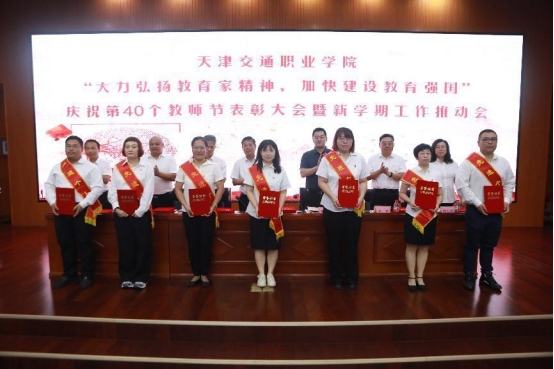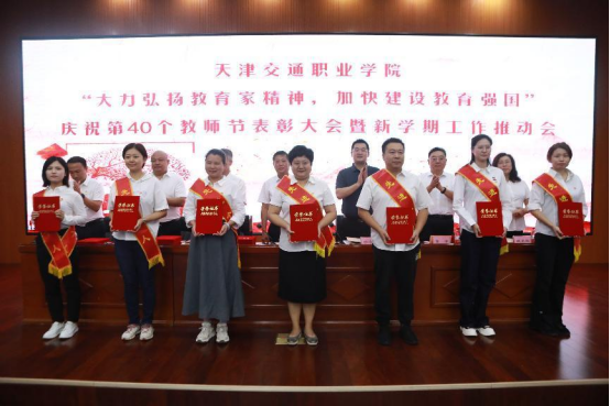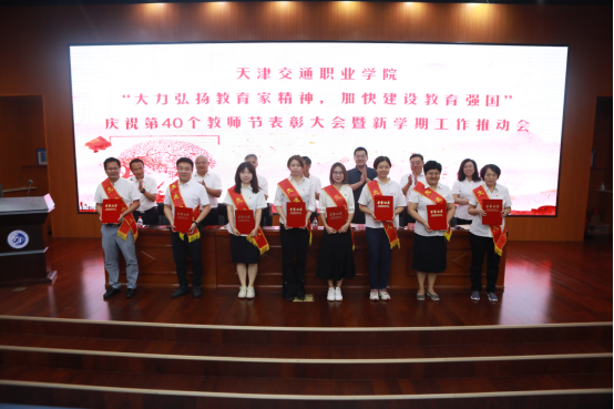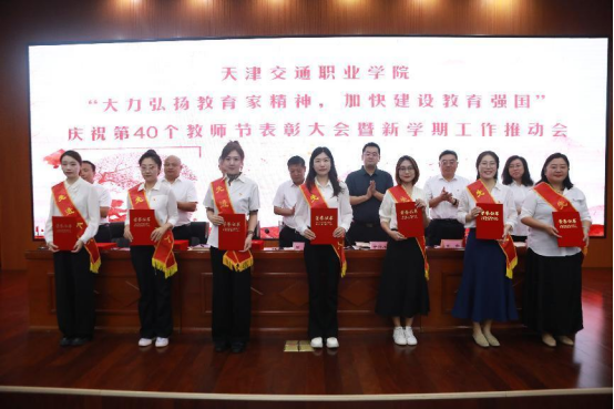“大力弘扬教育家精神 加快建设教育强国”庆祝第40个教师节表彰大会暨新学期工作推动会9月10日上午在学院学术报告厅召开。全体领导班子成员,中层干部,各类先进称号获得者,教师代表,2024年新入职教师,学生代表,共计200余人参加会议。学院党委委员、副院长唐东存同志主持会议。