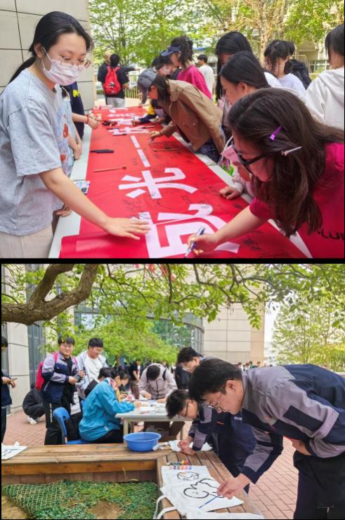 读书节的现场,师生们有的郑重地在活动条幅上签下自己的名字,以赴阅读之约;有的在知网、博刊专区打卡体验AI检索的奇妙之旅;有的拿起颜料和画笔,在空白帆布袋上书画自己得意的创作;还有的师生围绕在电子书、光学视频、环球英语等试用数据库的旁边,认真注册试用数据库,为自己的知识储备和文献检索攒劲蓄力。