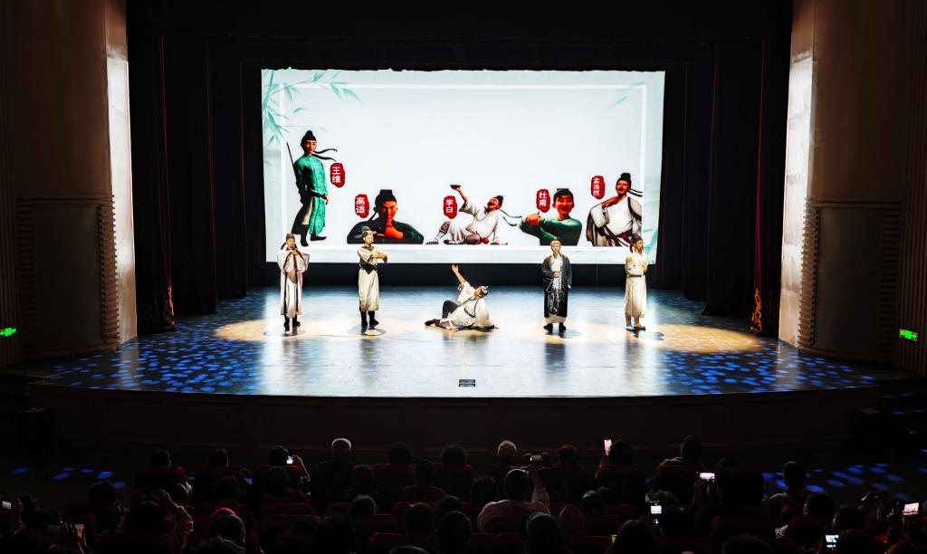 《诗韵满长安》以中华优秀传统文化为内核,聚焦唐代诗歌这一中华文化瑰宝,通过“诗史对话”的创新形式,展现中华民族共同体意识的深厚历史根基。舞台上,学院学生化身王维、李白、杜甫、孟浩然、高适等唐代诗人,再现“诗佛”的禅意山水、“诗仙”的浪漫豪情、“诗圣”的家国忧思,以及边塞诗派的壮阔情怀。节目突破传统诗文演绎模式,巧妙运用多媒体技术打造沉浸式舞台,既保留了古典意蕴,又赋予传统文化以青春活力。