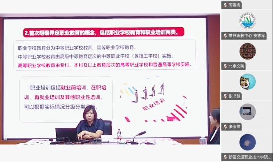主旨报告后,骨干教师们结合《中华人民共和国职业教育法》的要求,围绕职业教育教师的通识性知识、教育知识、职业背景知识、课程教学知识及能力的养成、教育教学评价等方面开展了广泛地交流和研讨。