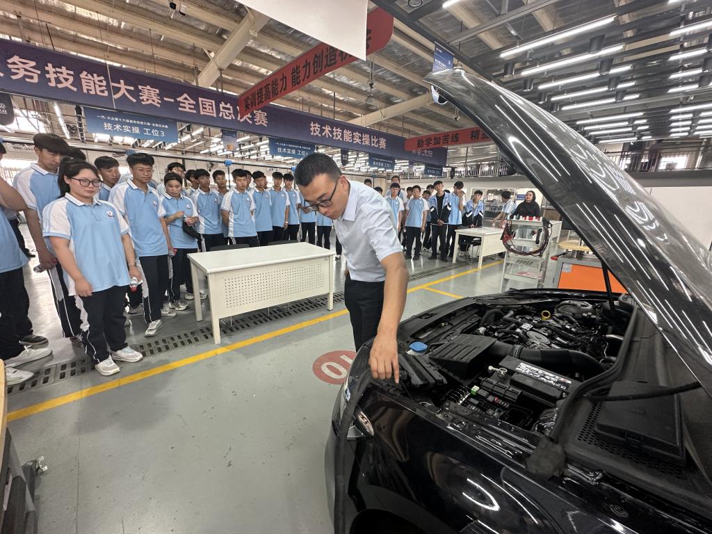 师生们参观了教学楼、图书馆、运动场、汽车实训中心。在华为问界培训中心了解新能源汽车的关键核心技术和未来发展趋势;在钣喷实训中心了解汽车维修与绿色低碳的前沿技术;在新能源汽车整车实训室体验新能源汽车VR虚拟仿真设备,感受技术迭代带来的学习领域变革;在鲁班工坊实训中心,亲身体会智能网联汽车的模拟驾驶,领会汽车工程领域的前沿技术和技能需求、激发学生们学习动力,开启了学生职业规划和未来发展的新篇章。