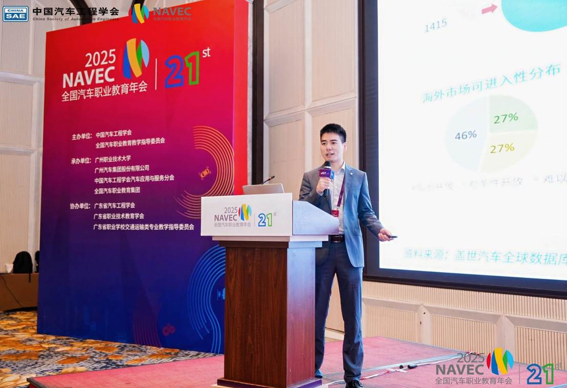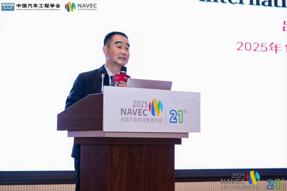 2025年11月15-16日,由中国汽车工程学会、全国汽车职业教育教学指导委员会主办的NAVEC 2025第21届全国汽车职业教育年会在广州隆重召开。此次会议以“破界融合、数智跃迁”为主题,紧扣汽车产业发展和职业教育政策脉搏,同时策划八场专门领域分论坛。beat365作为“职教出海”专题论坛的召集单位,以“校企协同出海:汽车职业教育国际化路径与本土化实践”为主题,汇聚行业协会领导、高校专家、车企代表等各界力量,共话汽车职业教育国际化发展新机遇、新路径,为全球汽车产业升级注入职教新动能。教育部鲁班工坊建设专家委员会主任吕景泉、奇瑞控股集团有限公司高级顾问李康、中国汽车工程学会人才与教育工作部副部长章智群、重庆安驿汽车技术服务有限公司总经理耿溢、重庆工业职业技术大学党委常委、副校长李雷、教育部中德先进职业教育(SGAVE)项目专家组负责人黄超、盖世汽车研究院高级分析师陈玮玮、天津交通职业职业学院党委副书记、校长于海祥,以及来自全国各汽车企业、职业院校150余人参加论坛。